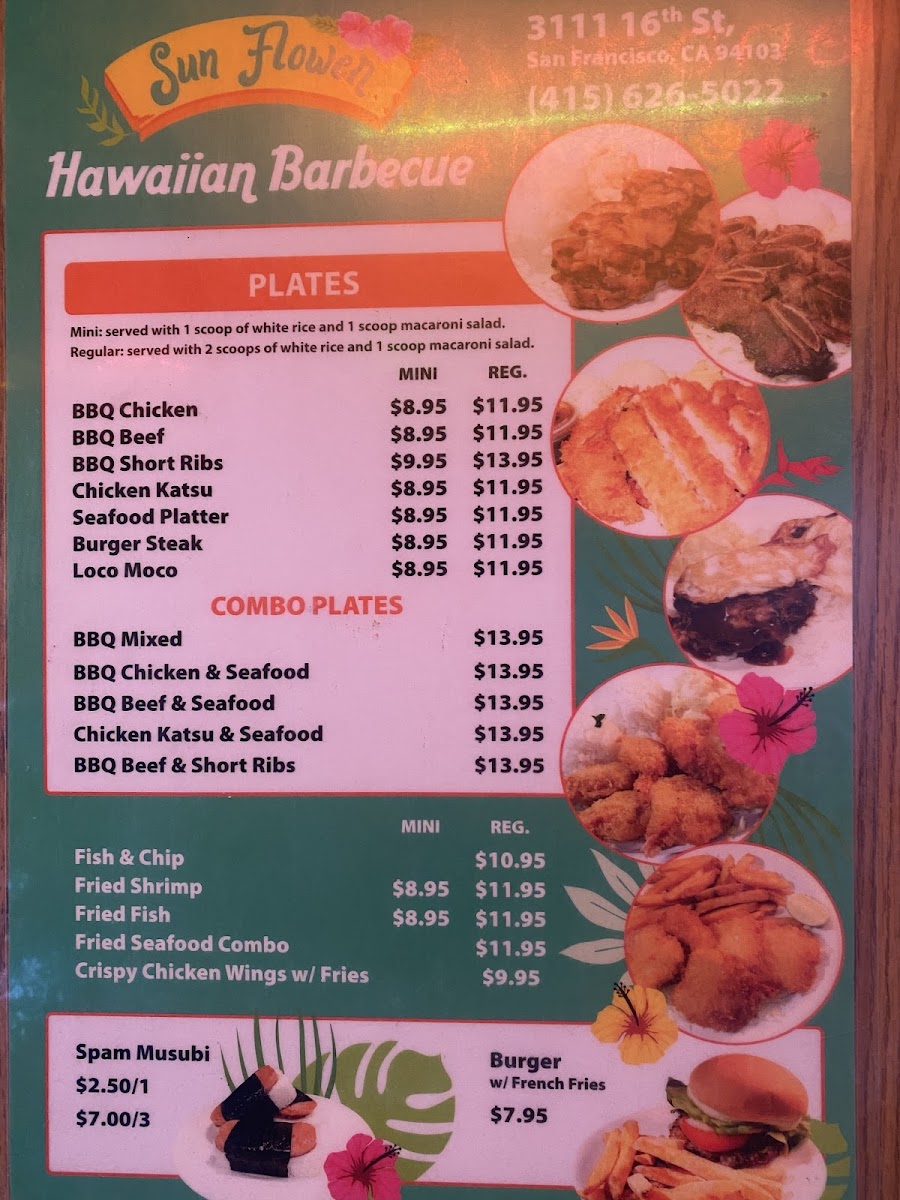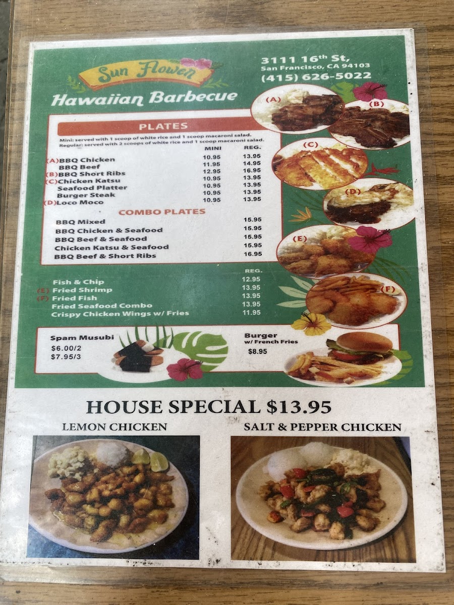 Welcome to Sunflower Vietnamese Restaurant & Hawaiian Barbecue, a culinary gem nestled in the heart of San Francisco at 3111 16th St. This vibrant restaurant invites you to explore the rich, tantalizing flavors of Vietnamese cuisine, infused with a touch of Hawaiian barbecue that makes for an unforgettable dining experience.
